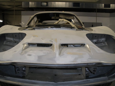 De voorkant van mijn GT wordt momenteel opnieuw gespoten. In de voorbereiding zijn wat oude reparaties gevonden.